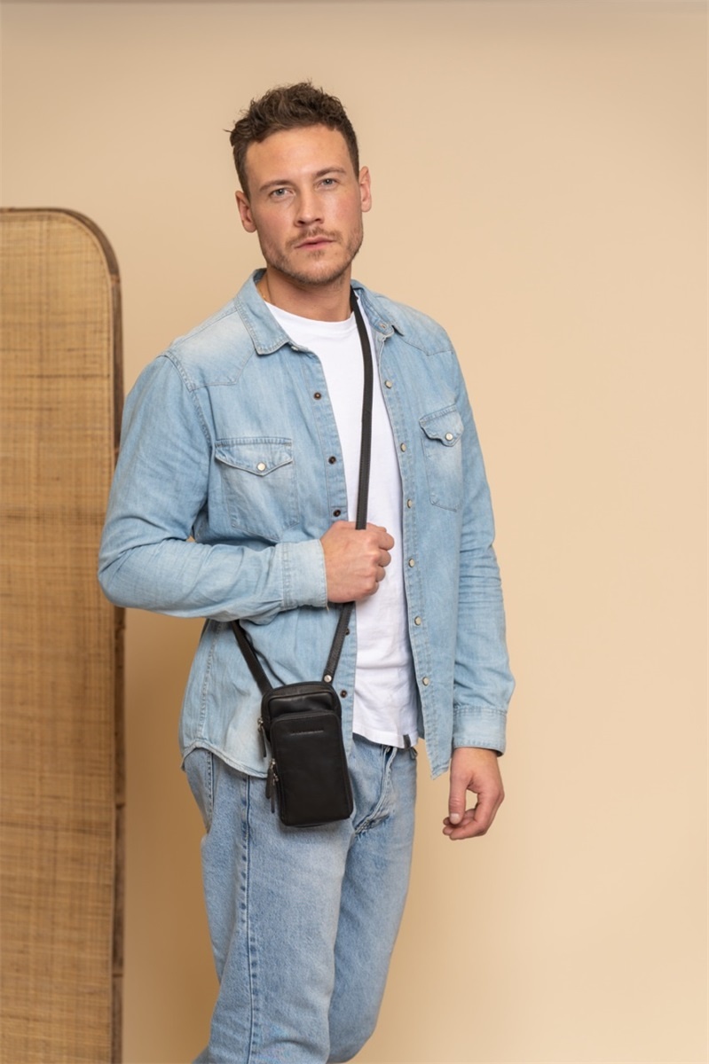 Dit leren telefoontasje komt met een verstelbare schouderband zodat je de tas op elke gewenste lengte kunt dragen. De Valdes heeft een compact hoofdvak. Ondanks zijn bescheiden afmetingen is het diep genoeg om al je waardevolle spullen veilig op te bergen. Hier kun je moeiteloos je bril, pasjes en sleutels in kwijt. Aan de voorkant van de tas bevindt zich een extra opbergvak met een ritssluiting, ideaal voor het veilig opbergen van bijvoorbeeld je telefoon.