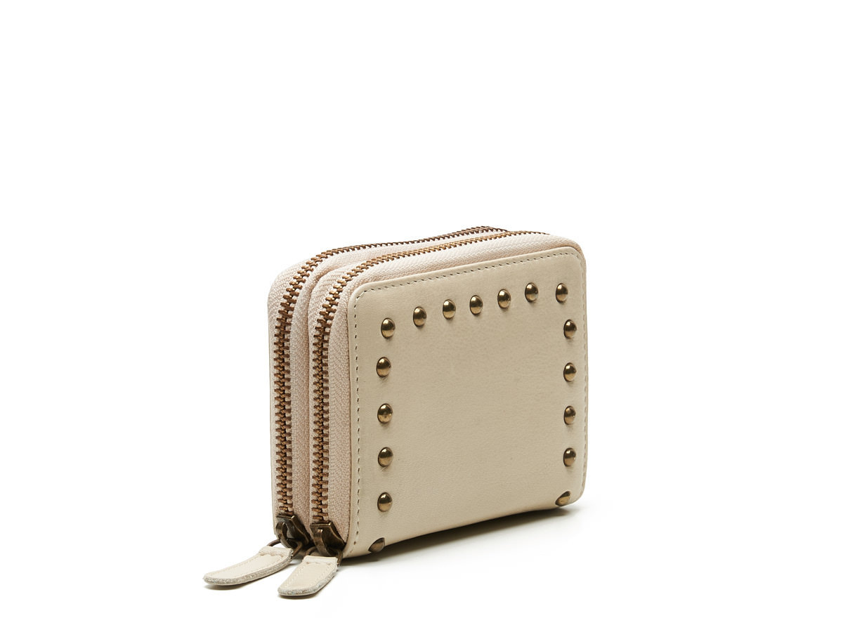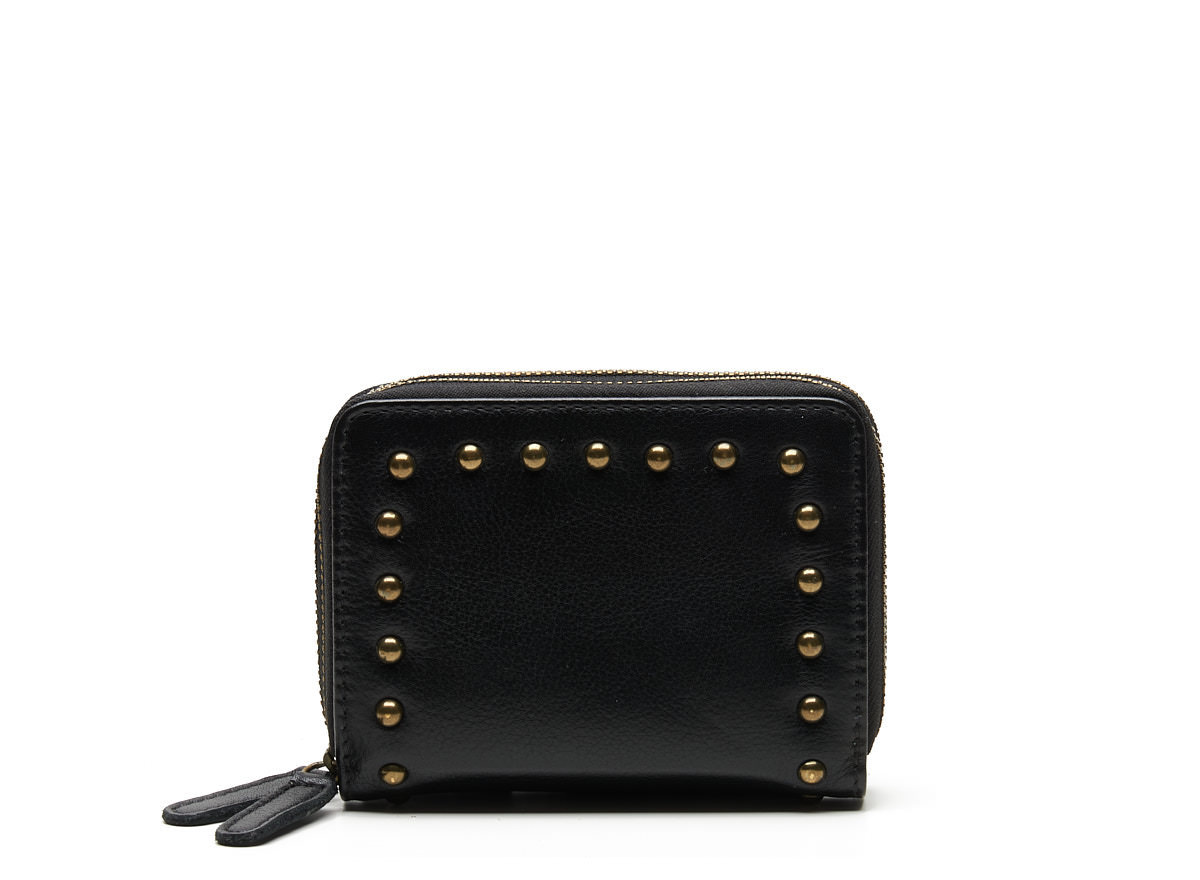 Leuke leren portemonnee uit de Verona serie van Chabo Bags. Deze Verona portemonnee is gemaakt van zacht leer en afgewerkt met brass kleurige studs, wat zorgt voor een stoere en modieuze uitstraling. Compact van formaat, maar verrassend ruim in gebruik.