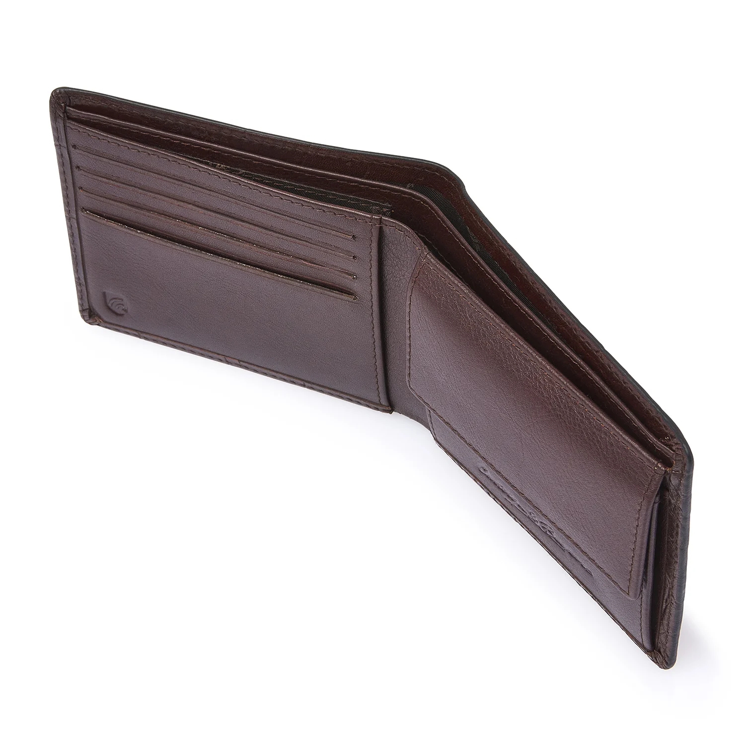 Stijlvolle leren RFID billfold in een handzaam formaat, met vakken voor papiergeld en een vakje voor muntgeld.