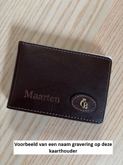 Dit artikel kan voorzien worden van uw naam of logo. U klikt op het vakje ‘met naam’ en vult, bij `uw naam ingeven' de gewenste naam in, dan wordt het artikel gegraveerd en verzonden. U kunt ook kiezen voor een logo te laten graveren. Het logo bestand kunt u mailen naar [email protected]o.v.v. uw ordernummer.